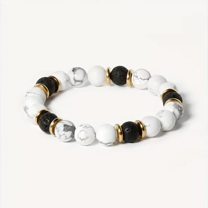 Moč Tišine – zapestnica, ustvarjena za tiste, ki iščejo globoko povezavo s svojim notranjim jazom, je simbol duhovnega prebujenja, čustvene preobrazbe in notranjega miru. Ko se svet zdi preveč hrupen in kaotičen, je tišina tista, ki nas spomni na moč, ki jo nosimo v sebi. Ta zapestnica združuje energijo dveh naravnih kristalov, ki podpirata proces duhovnega zdravljenja in čustvenega ravnovesja – lavo in howlit.