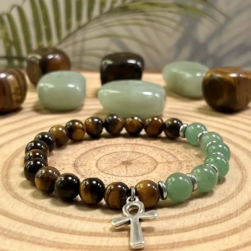 Zapestnica Moč Življenja – Tigrovo oko, Aventurin & Ankh simbol❤️