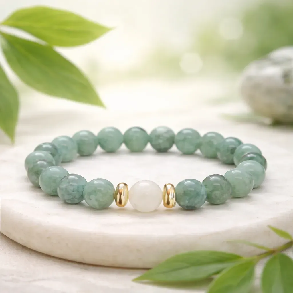 Zeleni aventurin je kamen rasti, upanja in poguma. Že stoletja velja za simbol novih priložnosti in notranje obnove. Njegova pomirjujoča energija te spodbuja, da zaupaš procesu, se odpreš življenju in narediš korak naprej brez strahu. Aventurin nežno umirja srce, pomaga sproščati stare skrbi in odpira prostor za optimizem, lahkotnost ter vero vase.