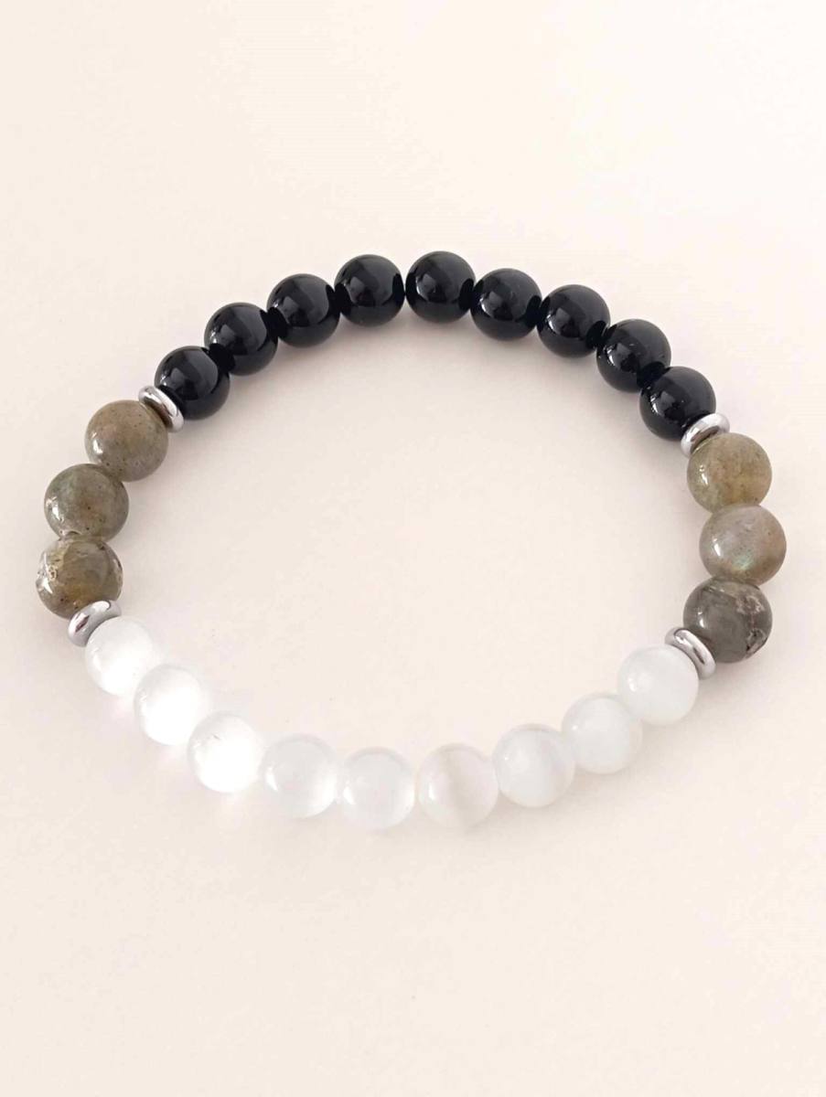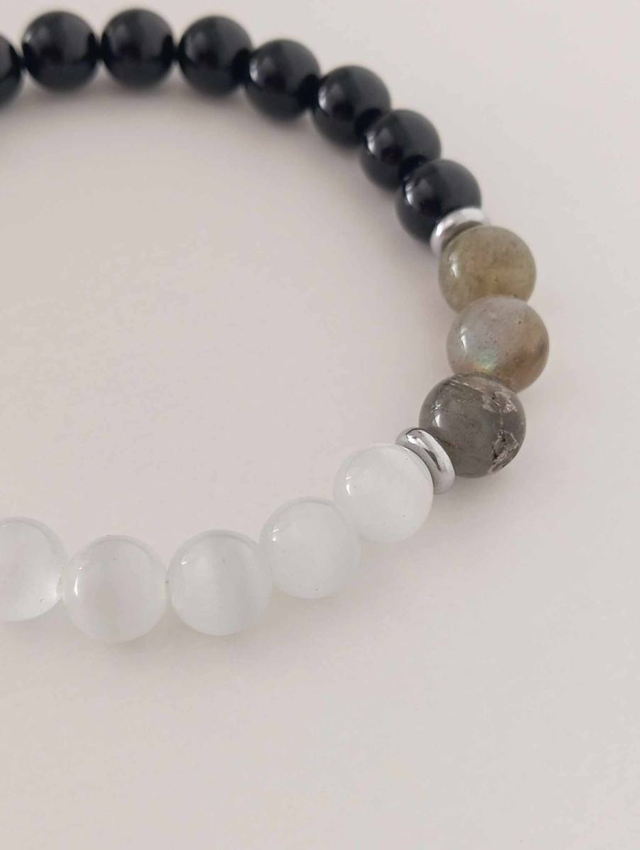 Most med svetovi – zapestnica obsidian, labradorit in mačje belo oko