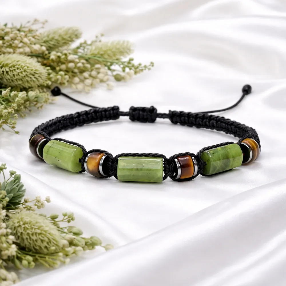 Zapestnico dopolnjuje tudi tigrovo oko – kamen zaščite, notranje moči in poguma. Njegova topla, zemeljska energija deluje kot varuh ljubezni, ki pomaga ohranjati stabilnost, zaupanje in notranjo trdnost tudi v zahtevnejših trenutkih. Tigrovo oko nas nežno ščiti pred strahovi in dvomi ter podpira, da v odnosih ostajamo zvesti sebi in svojemu srcu.