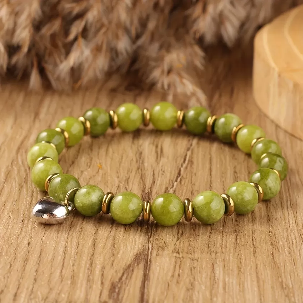 Zapestnica Spuščanja Bolečin je ustvarjena kot nežna opora srcu in duši, ki nosita preveč. Naravni zeleni žad je že tisočletja poznan kot kristal zdravljenja, sprostitve in čustvene modrosti. Njegova mehka zelena energija deluje pomirjujoče, raztaplja napetosti in pomaga osvoboditi bremena, ki jih nosimo v sebi – pa naj bodo to stare rane, skrbi ali potlačena čustva.