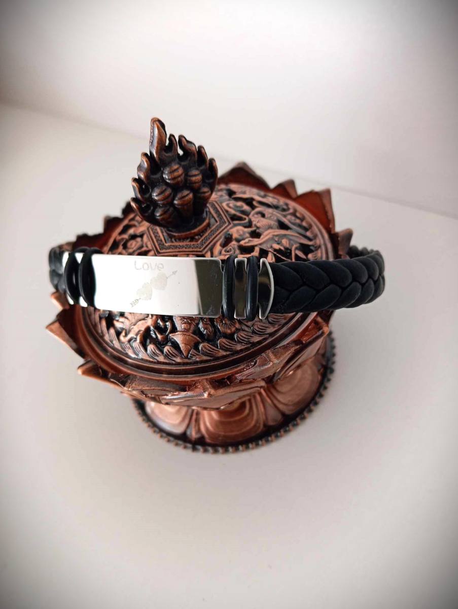 Je uniseks kos, primeren za moške in ženske, za vsakogar, ki v svojem srcu nosi vrednote ljubezni in zvestobe. Zaradi elegantne kombinacije pletenega usnja in nerjavečega jekla je brezčasen in se poda k vsakemu slogu – od sproščenega vsakdana do bolj elegantnih priložnosti.