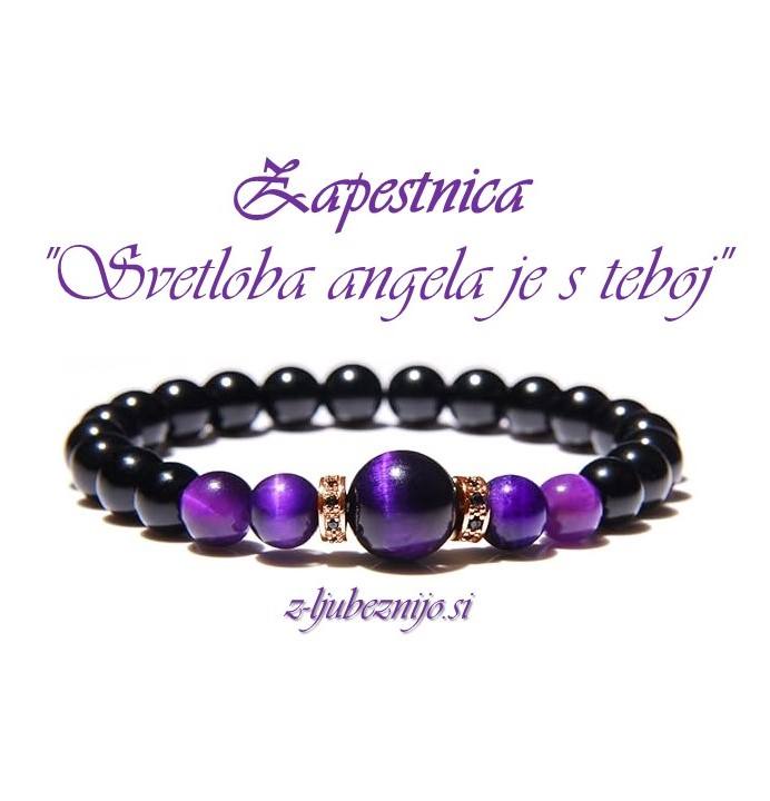 Zapestnica "Svetloba angela je s teboj" – viola mačje oko in oniks