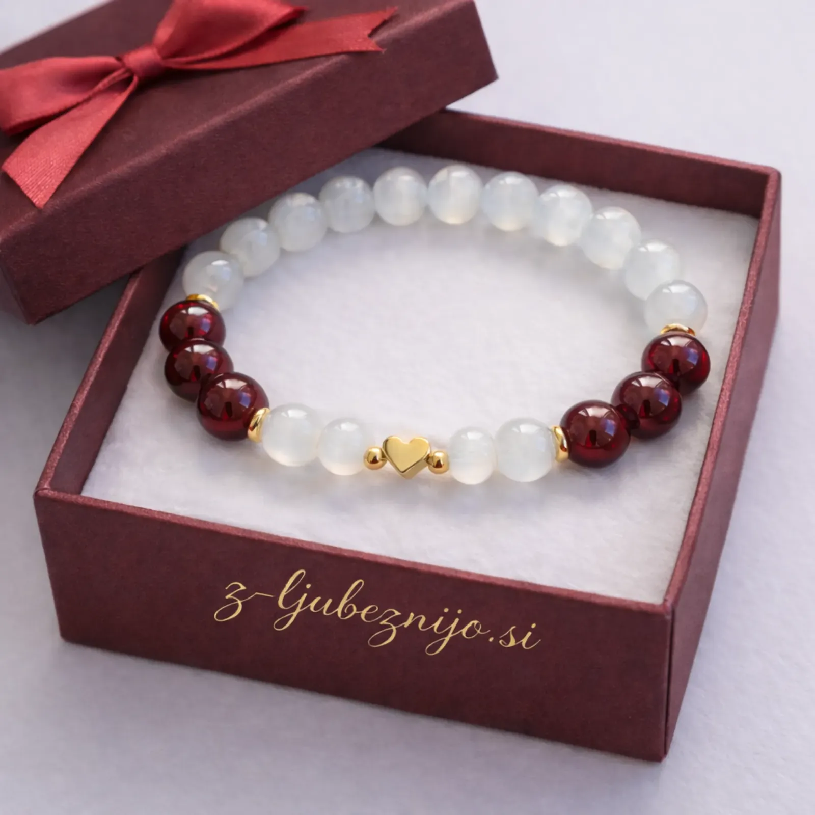 Granat je naravni kamen življenjske sile, strasti in notranjega ognja. Že stoletja velja za zaščitni in magični kamen, ki prebuja srčno energijo, krepi samozavest in odpira pot ljubezni. Njegova globoko rdeča barva simbolizira predanost, pogum in toplino. Granat prizemljuje, hkrati pa spodbuja notranjo moč, stabilnost in čustveno povezanost. Pogosto se povezuje z vitalnostjo, zaščito in ohranjanjem iskre v odnosih.