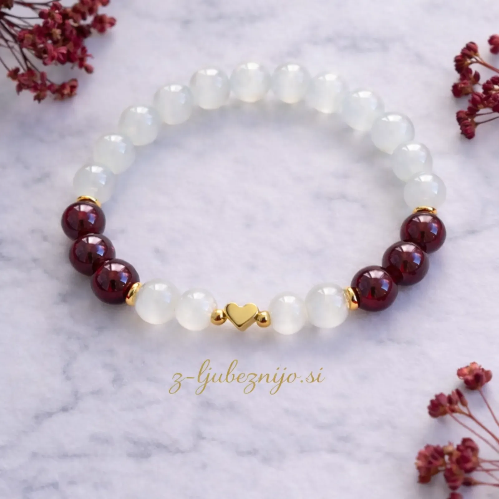 V središču zapestnice se nahaja zlato srce – simbol brezpogojne ljubezni, povezanosti in topline.