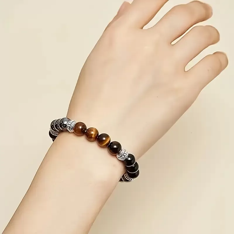 Zapestnica "Trikratna zaščita" je močan duhovni talisman, oblikovan z namenom, da vas varuje in podpira na vseh ravneh vašega življenja. Združuje tri izjemno močne kristale – tigrovo oko, hematit in obsidian – ki skupaj tvorijo močno energijsko zaščito. Vsak od teh kristalov prinaša svoje edinstvene lastnosti, v zapestnici pa se prepletajo v popoln ščit pred negativnimi vplivi.
