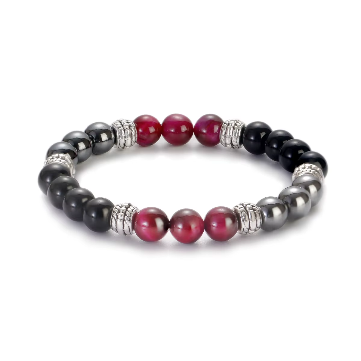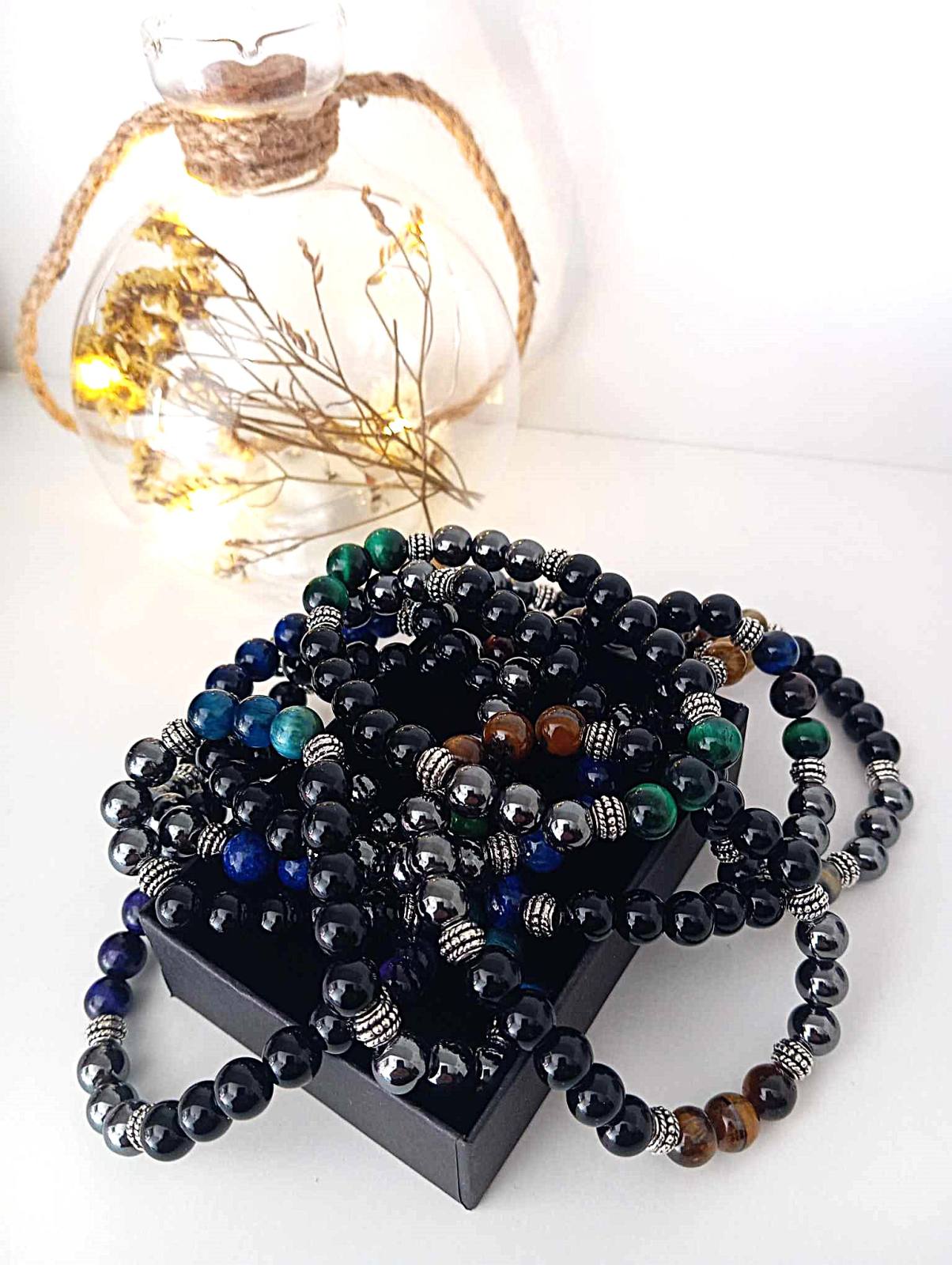 Kombinacija obsidiana, hematita in tigrovega očesa velja za eno najmočnejših naravnih zaščitnih povezav v svetu kristalov. Ti trije kamni delujejo v popolni sinergiji, kjer vsak dopolnjuje in krepi moč drugega. Skupaj ustvarjajo neviden ščit pred negativnostjo, notranjo zmedenostjo in energijskimi motnjami. Zapestnica spodbuja zbranost, samozavest ter pomaga ohranjati čustveno stabilnost. Namenjena je vsem, ki iščejo močno podporo pri osebni rasti, zaščiti in notranji moči.