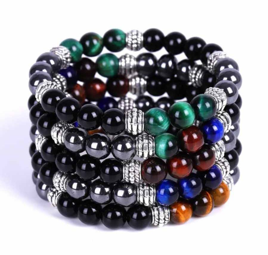 Zapestnica Trikratna zaščita je močan duhovni talisman, zasnovan z namenom, da vas ščiti, prizemljuje in energijsko podpira na vseh ravneh vašega življenja. Združuje tri izjemne kristale: obsidian, hematit in tigrovo oko, ki skupaj tvorijo močan energijski ščit pred vsemi oblikami negativnosti.