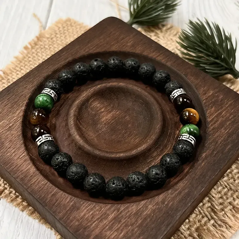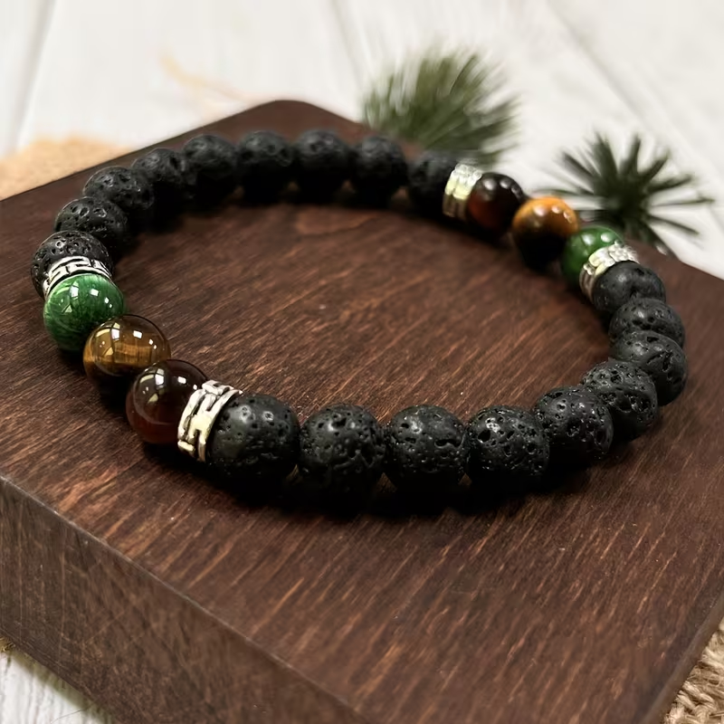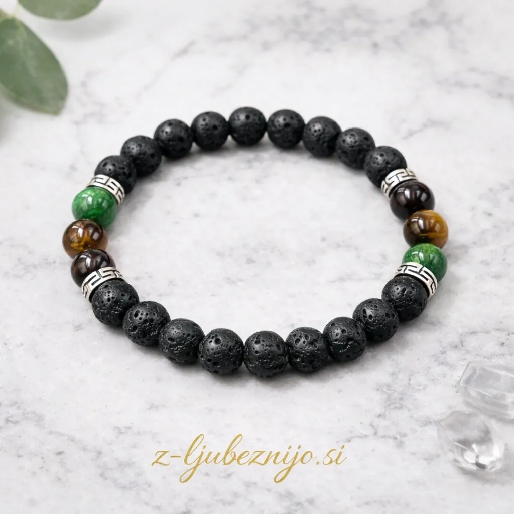 Lava v zapestnici predstavlja trdnost in stabilnost. Njena energija nas podpira v trenutkih pritiska, odgovornosti in pomembnih odločitev. Pomaga ohranjati mirno glavo, jasen fokus in notranjo zbranost, kar je še posebej dragoceno v zahtevnih delovnih okoljih. Lava nas opominja, da prava moč prihaja iz notranje stabilnosti in samozavesti.