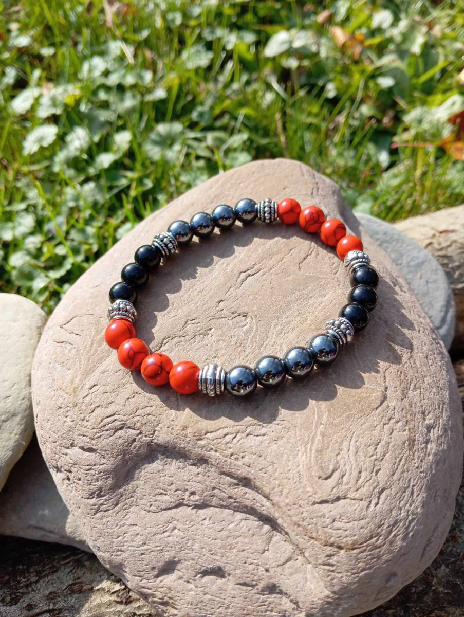 Rdeči turkiz prinaša energijo strasti, topline in odločnosti. S svojo izrazito rdečo barvo predstavlja ogenj ljubezni, ki nas spodbuja k izražanju in poglobljenemu doživljanju čustev. Rdeči turkiz v zapestnici krepi vašo samozavest in spodbuja pozitivno energijo, kar pritegne ljubezen in srečo v vaše življenje. Njegova vibracija je optimistična, vesela in spodbuja radostno doživljanje ljubezenskih trenutkov.