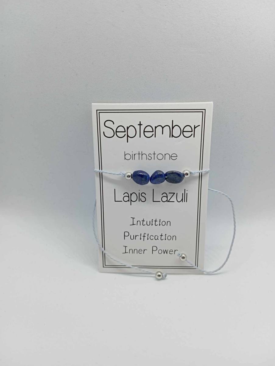 September prinaša prehod iz poletja v jesen, označen s spremembami v naravi in novimi začetki. Astrološko je povezan z znamenji Device in Tehtnice, ki simbolizirata analitičnost, ravnovesje ter lepoto. Kristal, povezan z septembrom, je lapis lazuli, čudovit temno modri kristal z zlatimi pikami, ki simbolizira modrost, resnico ter duhovno rast.