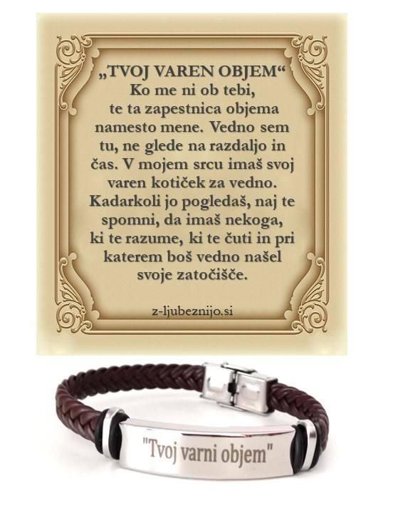 Zapestnica s posvetilom ni zgolj okras. Je opomnik, da nekdo nekje misli nate, da verjame vate in te podpira. Nositi jo na roki je lepo, a njena moč ostaja enaka, tudi če jo hranimo v torbici, žepu ali v predalu. Ko življenje postane pretežko in potrebujemo dotik topline, je tam – da spomni, da ljubezen in podpora nikoli ne izgineta.