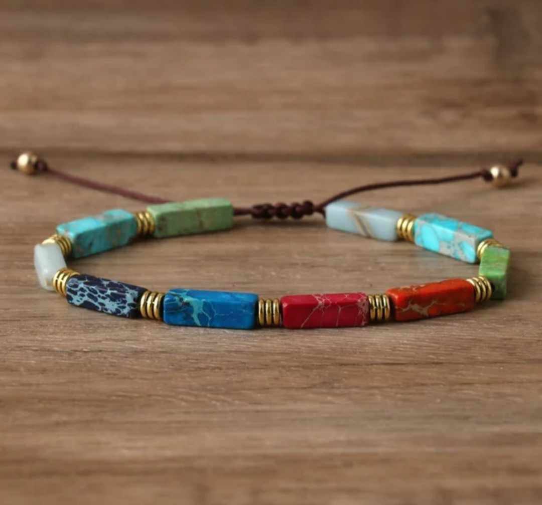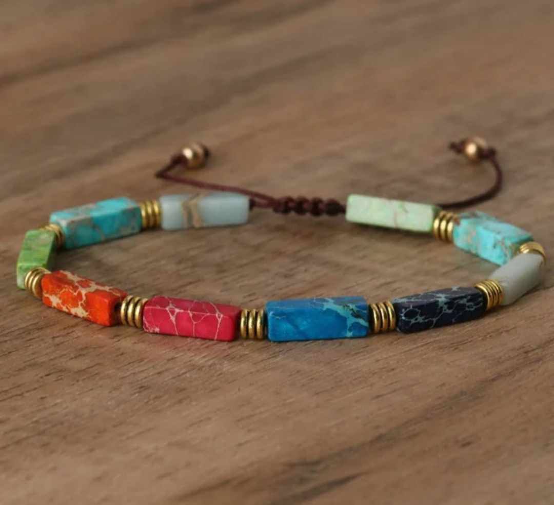Ta zapestnica iz sedimentnih barvnih kamnov je most med dušo in naravo, simbol notranjega ravnovesja in harmonije. Vsak kamen, skrbno izbran in ročno nanizan, nosi v sebi zgodbo Zemlje, odmev večne modrosti narave in pretok energije, ki nas povezuje z univerzumom.