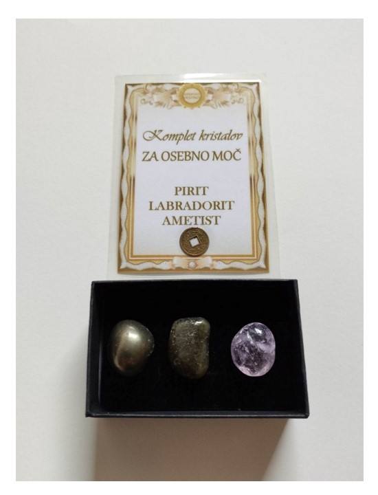 Komplet kristalov prejmete v darilni embalaži. Poleg kompleta pa prejmete tudi kartico seznama kamnov v kateri je AMULET-TALISMAN- Kitajski FENG SHUI KOVANEC