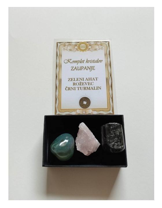Trije kristali, ki so posebej priljubljeni zaradi svojih zmožnosti, da okrepijo zaupanje, so zeleni ahat, roževec in črni turmalin.