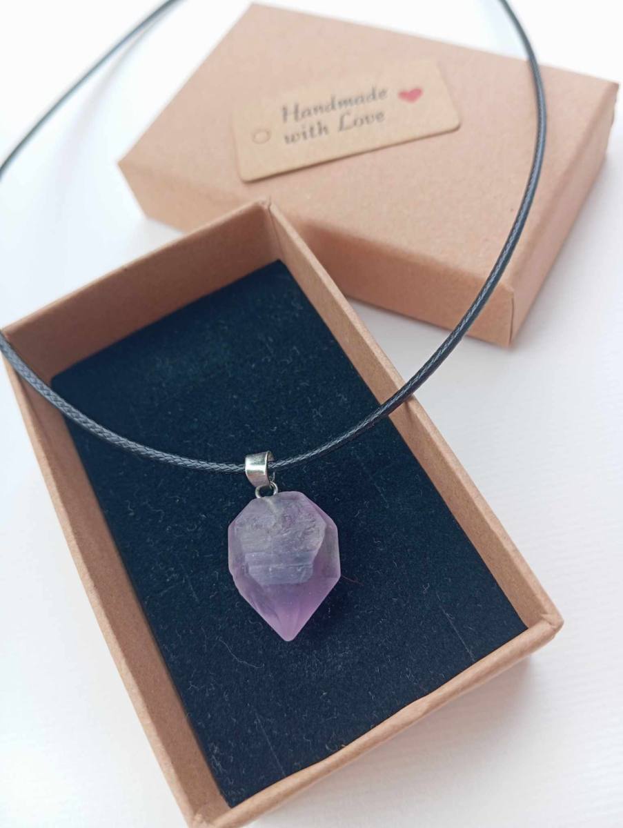 Ogrlica z ametistom je ročno izdelana iz visokokakovostnega naravnega kristala, kar zagotavlja avtentičnost in edinstvenost vsakega kosa. Vsak kristal ima svojo specifično obliko, barvne odtenke in energijske vibracije, kar pomeni, da je vsak kos nakita unikaten. Kristal je pogosto vgrajen v elegantno verižico iz srebra ali drugega plemenitega kovinskega materiala, ki še dodatno poudarja naravno lepoto ametista.