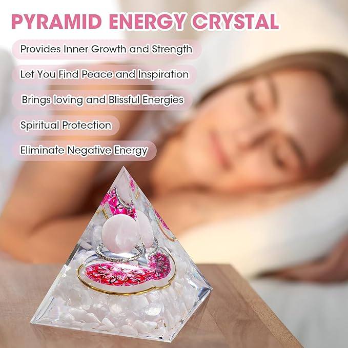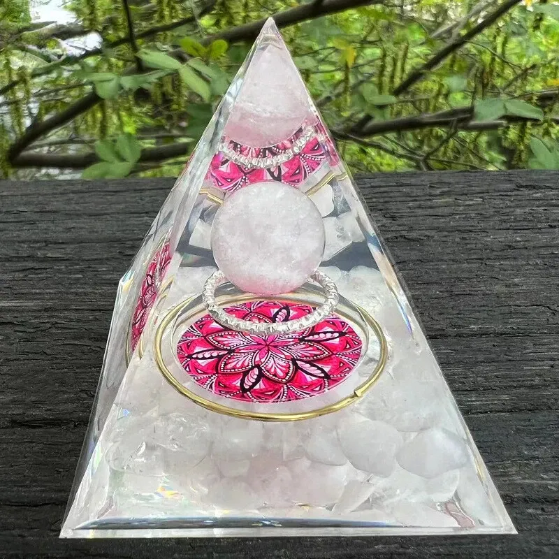 Ta orgonitna piramida združuje nežno energijo roževca in kristalno jasnost kamene strele, da v prostoru ustvari mir, toplino in harmonijo. Deluje kot podpora pri sproščanju čustvenih blokad, mehčanju napetosti ter krepitvi ljubezni — do sebe in do drugih.