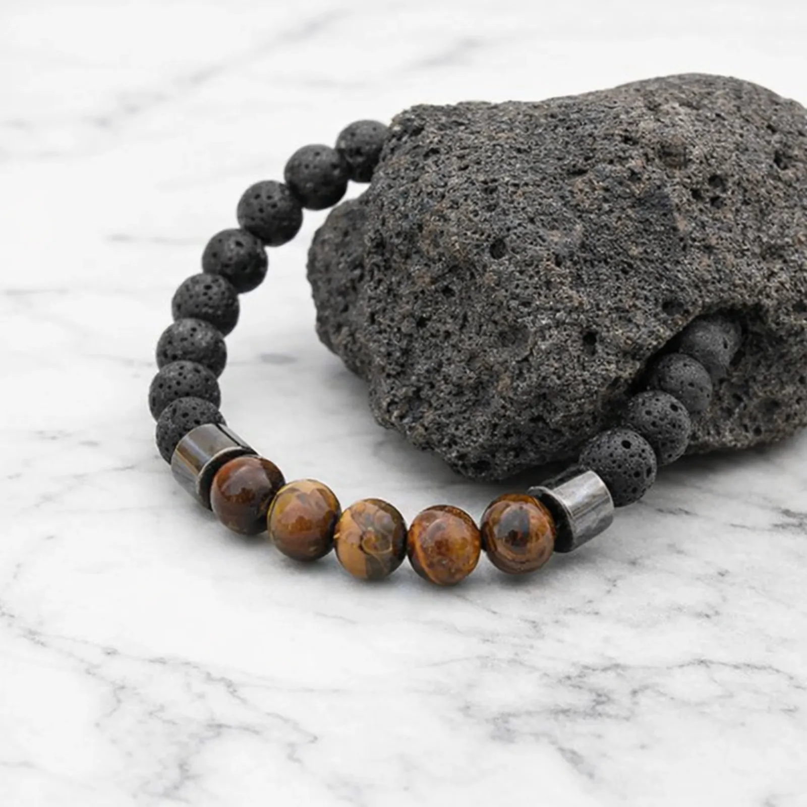 Zapestnica iz kamna vulkanske lave, hematita in tigrovega očesa je čudovit in mogočen talisman, ki združuje naravne sile treh izjemnih mineralov za podporo vašemu duhovnemu in telesnemu blagostanju. Vsak kamen v tej zapestnici nosi svojo edinstveno energijo in lastnosti, ki skupaj tvorijo harmonijo in ravnovesje, potrebno za celostno zdravljenje in duhovno rast.