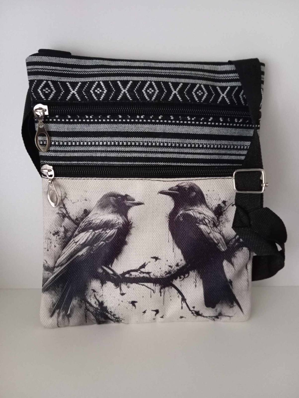 Izdelana je iz kombinacije tkane bombažne ali akrilne tkanine, kar ji daje prijeten občutek in estetski videz. Nastavljiv pas omogoča prilagoditev dolžine, tako da jo lahko nosite čez ramo ali križno, kar je še posebej priročno med sprehodi ali potovanji.