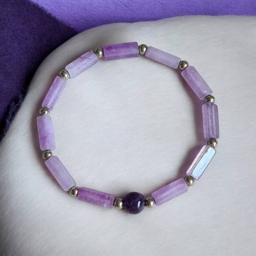 Nošenje te zapestnice pomaga sprostiti napetost, zmanjšuje stres in odpravlja notranji nemir, ki pogosto nastaja v hitrem tempu vsakdana. Ametist te vodi stran od preobremenjenih misli in te poveže z notranjim centrom – prostorom, kjer se počutiš varno, mirno in celovito.