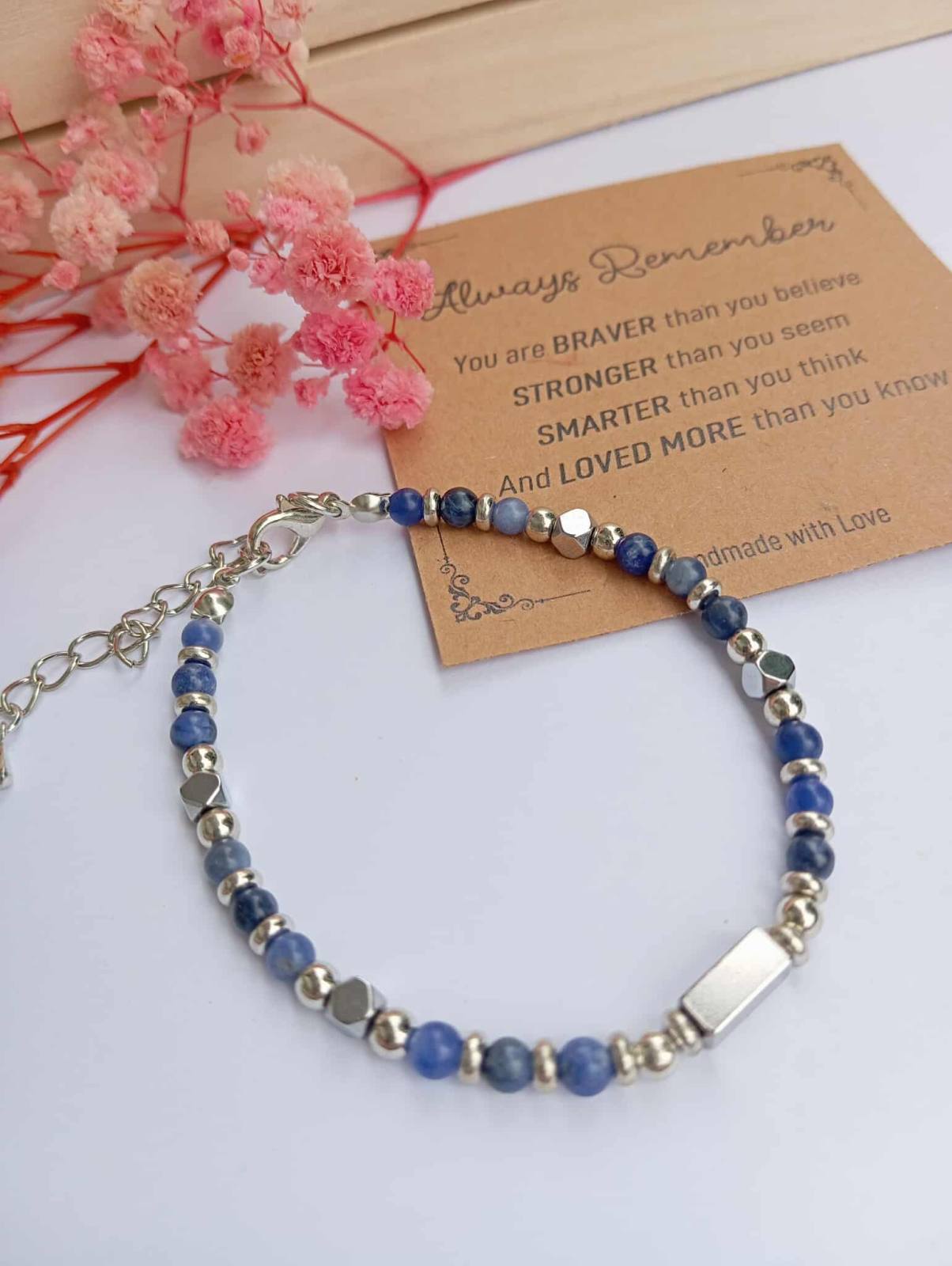Vsako zapestnico prejmeš v čudoviti darilni škatlici, skupaj z opisom pomena kristala, pripravljenim z ljubeznijo – kot opomnik, da je največje bogastvo znotraj tebe. Velikost zapestnice je nastavljiva in se prilagodi vsakemu zapestju, zato je popolna tudi kot darilo.