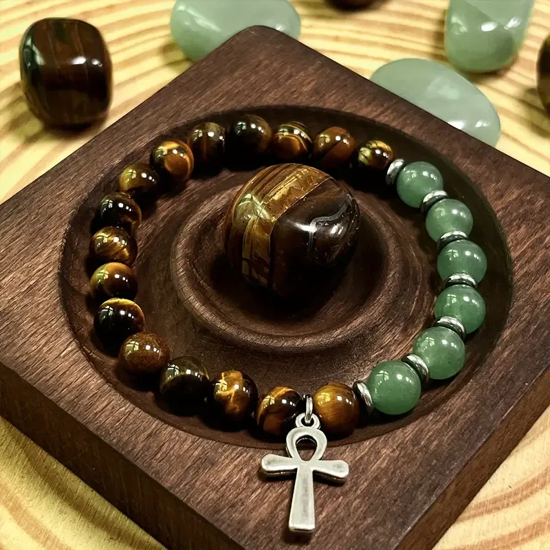 Zapestnica Moč Življenja – Tigrovo oko, Aventurin & Ankh simbol❤️