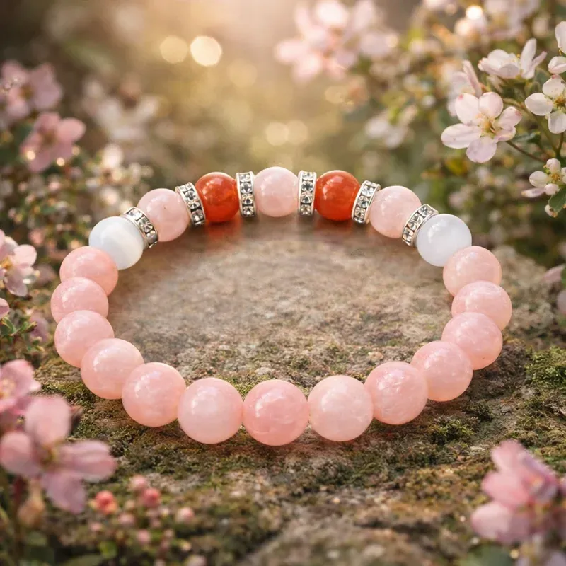 Zapestnica Svetloba srca je ustvarjena kot nežen opomnik, da se prava moč vedno rodi v srcu. Združuje tri izjemne kristale – roževec, karneol in selenit – v harmonično celoto, ki nagovarja čustva, notranji mir in življenjsko energijo.