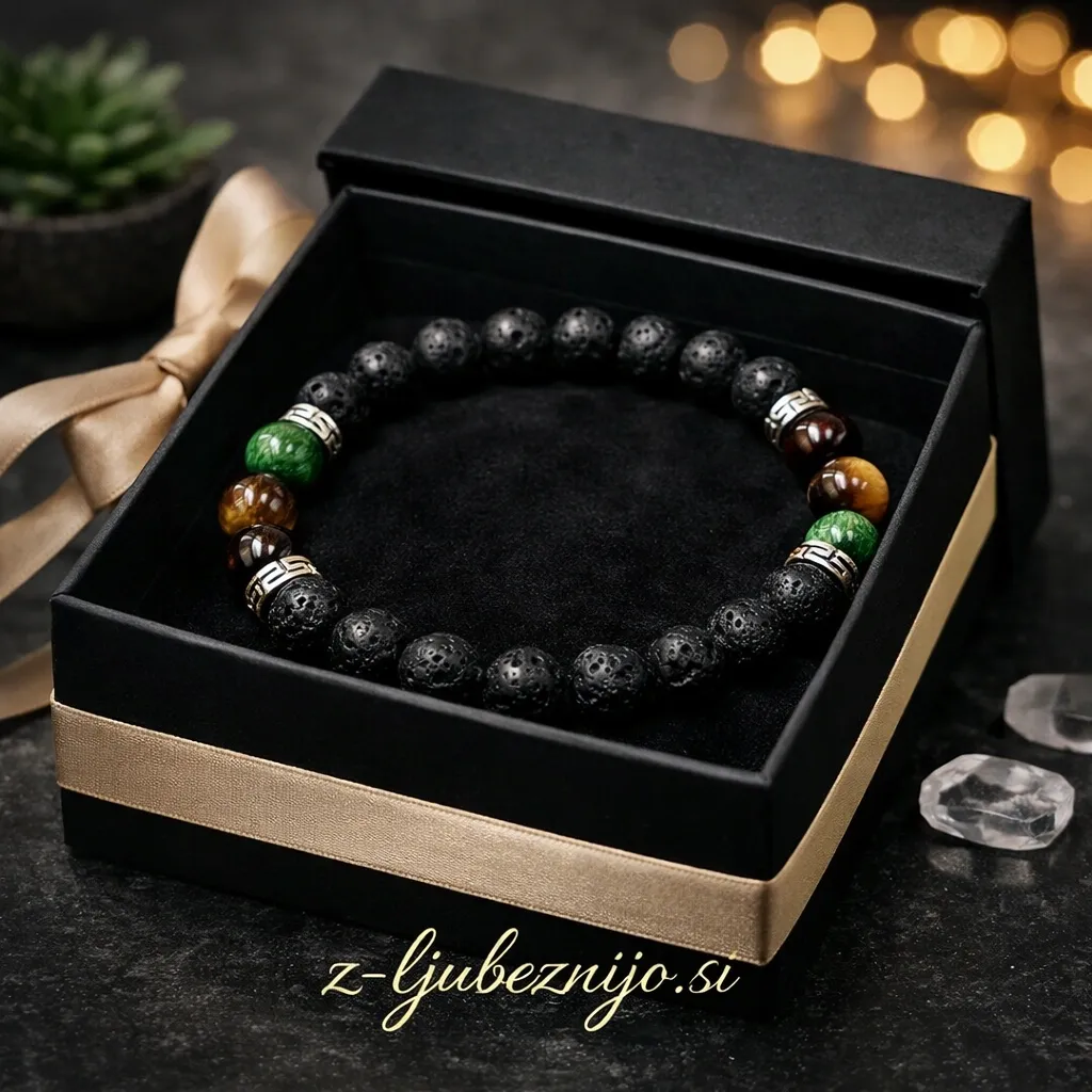 Lava v zapestnici predstavlja trdnost in stabilnost. Njena energija nas podpira v trenutkih pritiska, odgovornosti in pomembnih odločitev. Pomaga ohranjati mirno glavo, jasen fokus in notranjo zbranost, kar je še posebej dragoceno v zahtevnih delovnih okoljih. Lava nas opominja, da prava moč prihaja iz notranje stabilnosti in samozavesti.