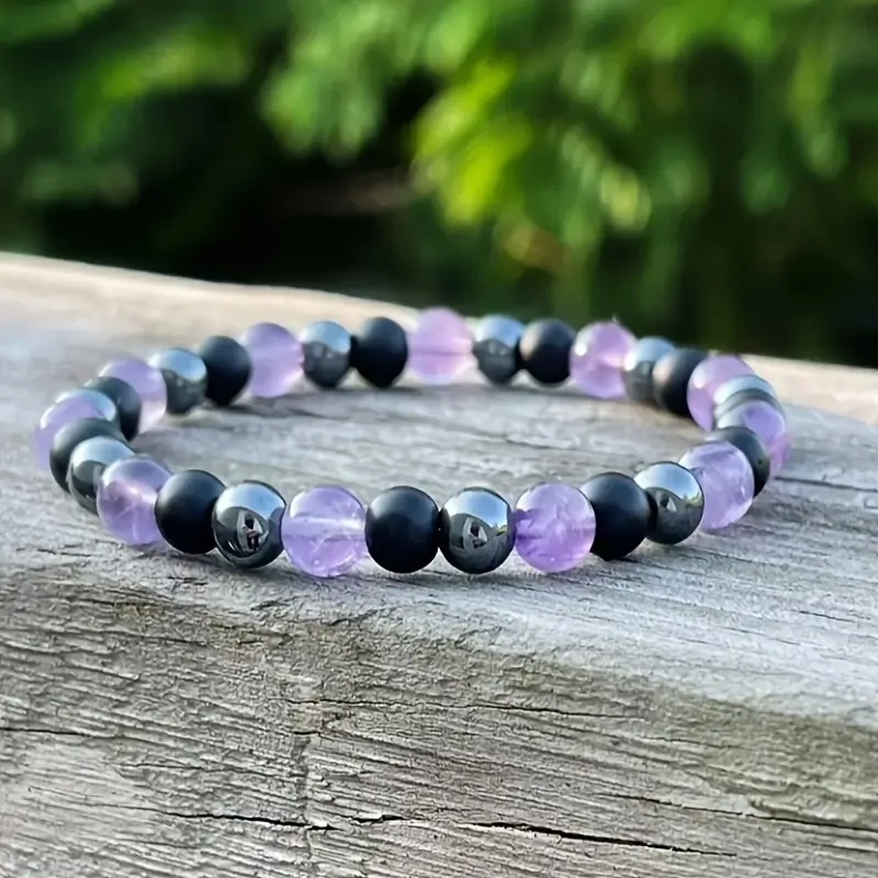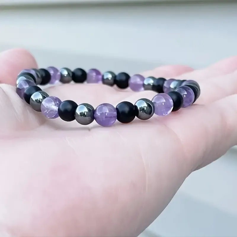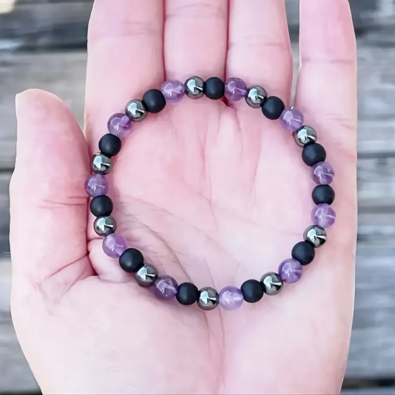 Izdelana je iz 6 mm naravnih kristalov ametista, hematita in črnega oniksa, ki v harmonični kombinaciji pomagajo uravnovesiti vaše energetsko polje. Zapestnica je prilagodljiva in nanizana na kakovosten elastični trak, zato se lepo prilega večini zapestij ter omogoča udobno in vsakodnevno nošenje.