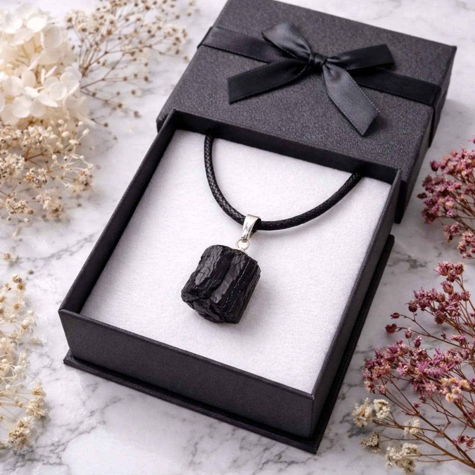 - Kakovosten Črni Turmalin: Vsak obesek je skrbno izbran, da zagotavlja visoko kakovost in močne energijske lastnosti.